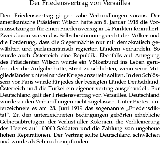 Der Friedensvertrag von Versailles, aus: "`Entdecken und Verstehen 4"', Seite 32